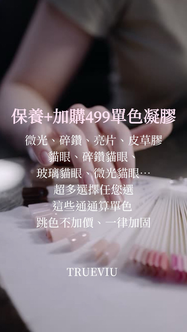 任一款手足保養,加價 $499 即可升級 單色、貓眼、璀燦、皮草混搭、跳色 不加價!!